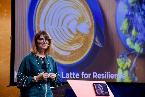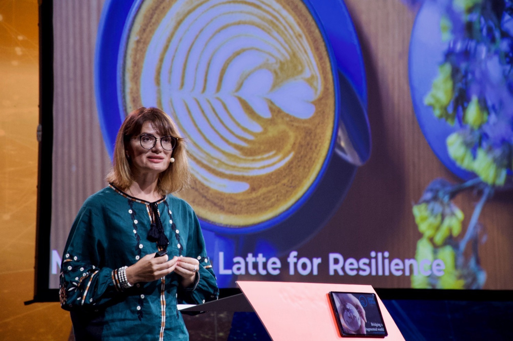 Maryna Saprykina came directly from Kiev in Ukraine to talk about how important it is to keep up with the new establishments, despite the war. As the cofe shop at the cormer, where Saprykina every morning started her day with a latte. A nice start of a day in a country where you dont know whats gonna happen next. Today, in Ukraine, every second person starting a business is a woman.
